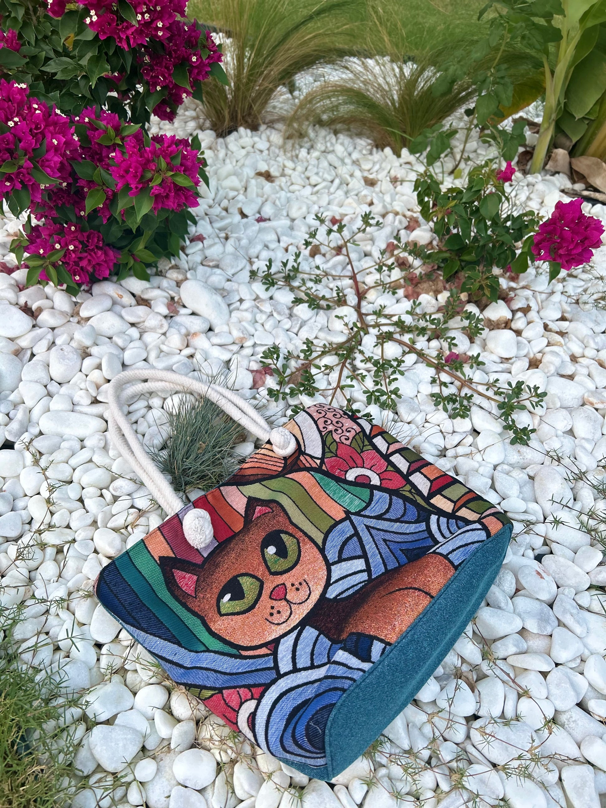 Strand-Tasche Katze Kunterbunt